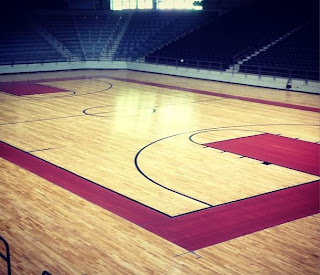 They repaint the court at the Jack Stephens Center every year. That is one of the reasons it continues to look so nice each year. But we noticed this year it appears to have a slightly different look to the maroon? Are our eyes going bad? Is this just a first coat of maroon paint? Judge for yourself.